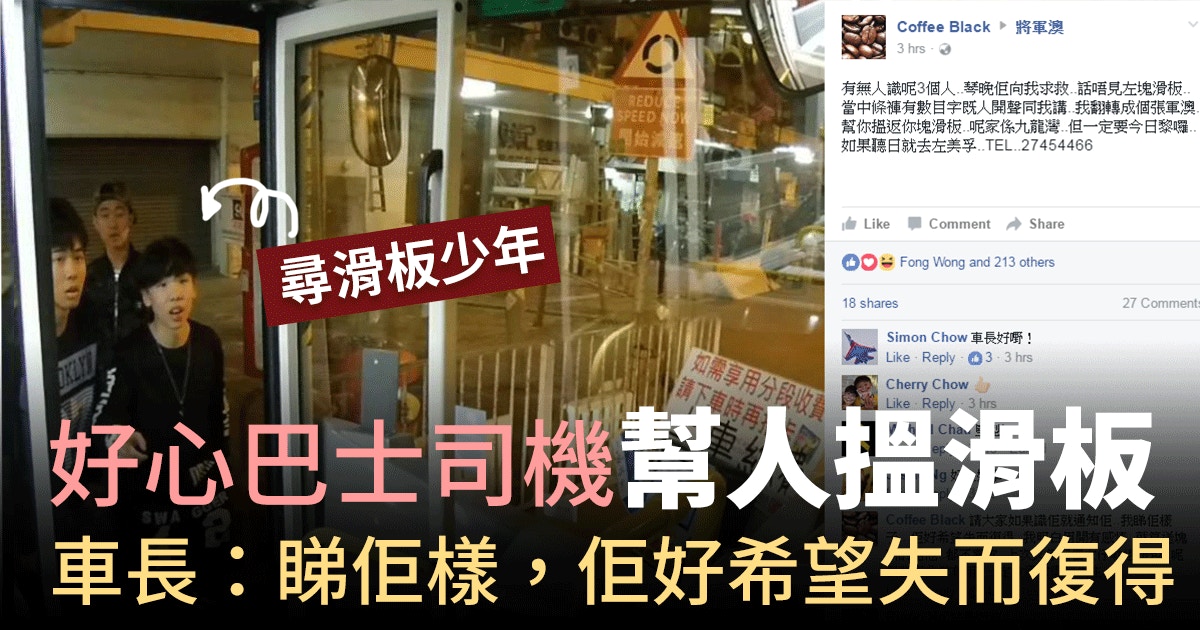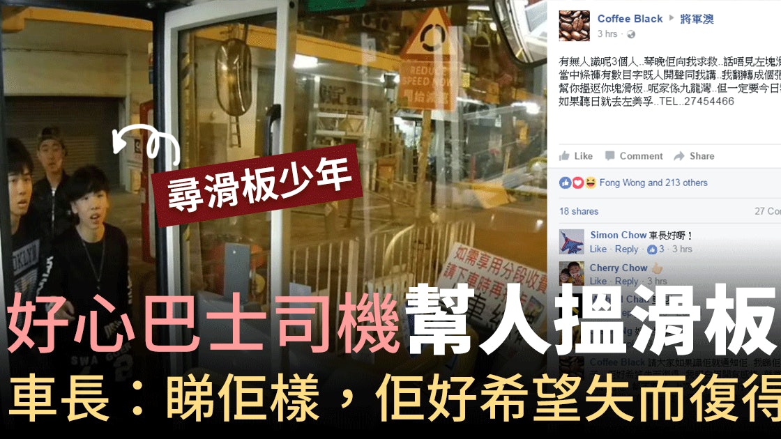 好人好事 九巴車長fb尋滑板失主稱 反轉成個將軍澳 助尋回 香港01 熱爆話題