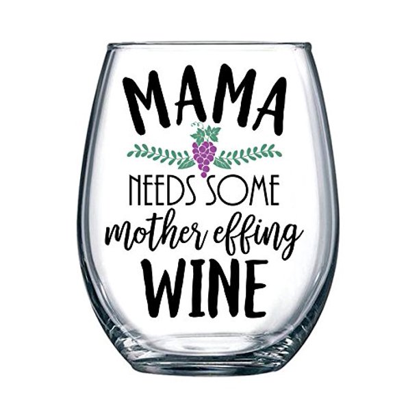 Amazon Com Funny Mom Wine Glass Mama Needs Some Mother Effing Wine Cute Wine Glass For Women Stemless Wine Glasses